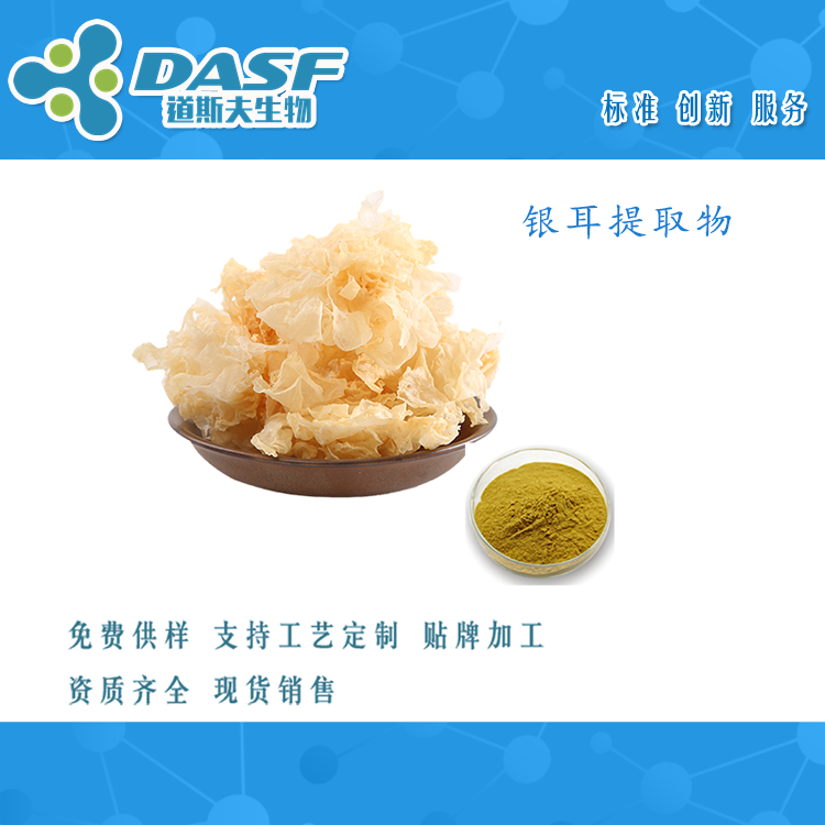 提取来源:真菌类银耳科银耳属植物,又称白木耳、雪耳、银耳子等。夏秋季生于阔叶树腐木上。