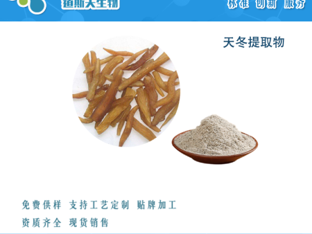 提取来源:天冬提取物是从百合科植物天门冬〔Asparaguscochinchinensis(Lour.)Merr. 〕的块根中提取的。