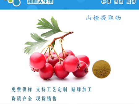 来 源:山楂提取物来源为蔷薇科植物山里红CrataeguspinnatifidaBge.var.majorN.E.Br.或山楂CrataeguspinnatifidaBge.的干燥成熟果实。